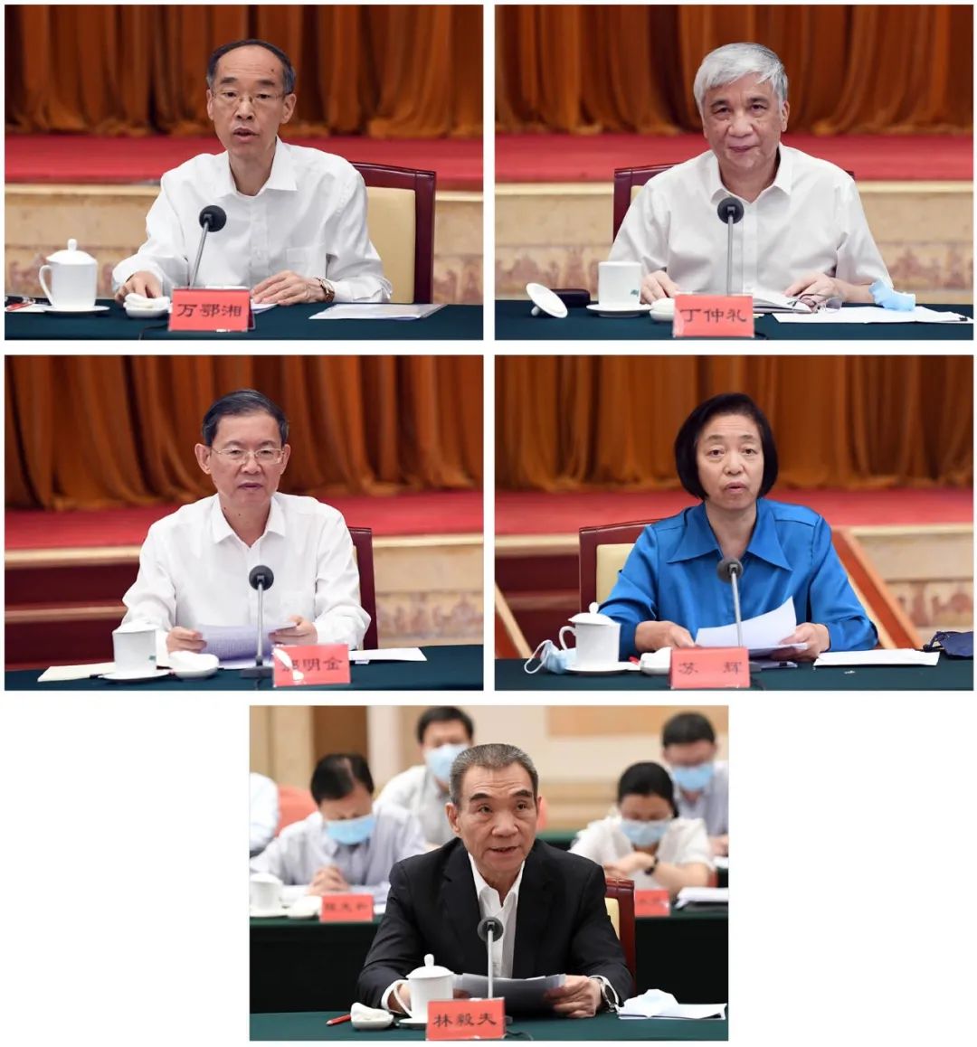 民革中央主席万鄂湘、民盟中央主席丁仲礼、民建中央主席郝明金、台盟中央主席苏辉、无党派人士代表林毅夫在座谈会上介绍调研成果。