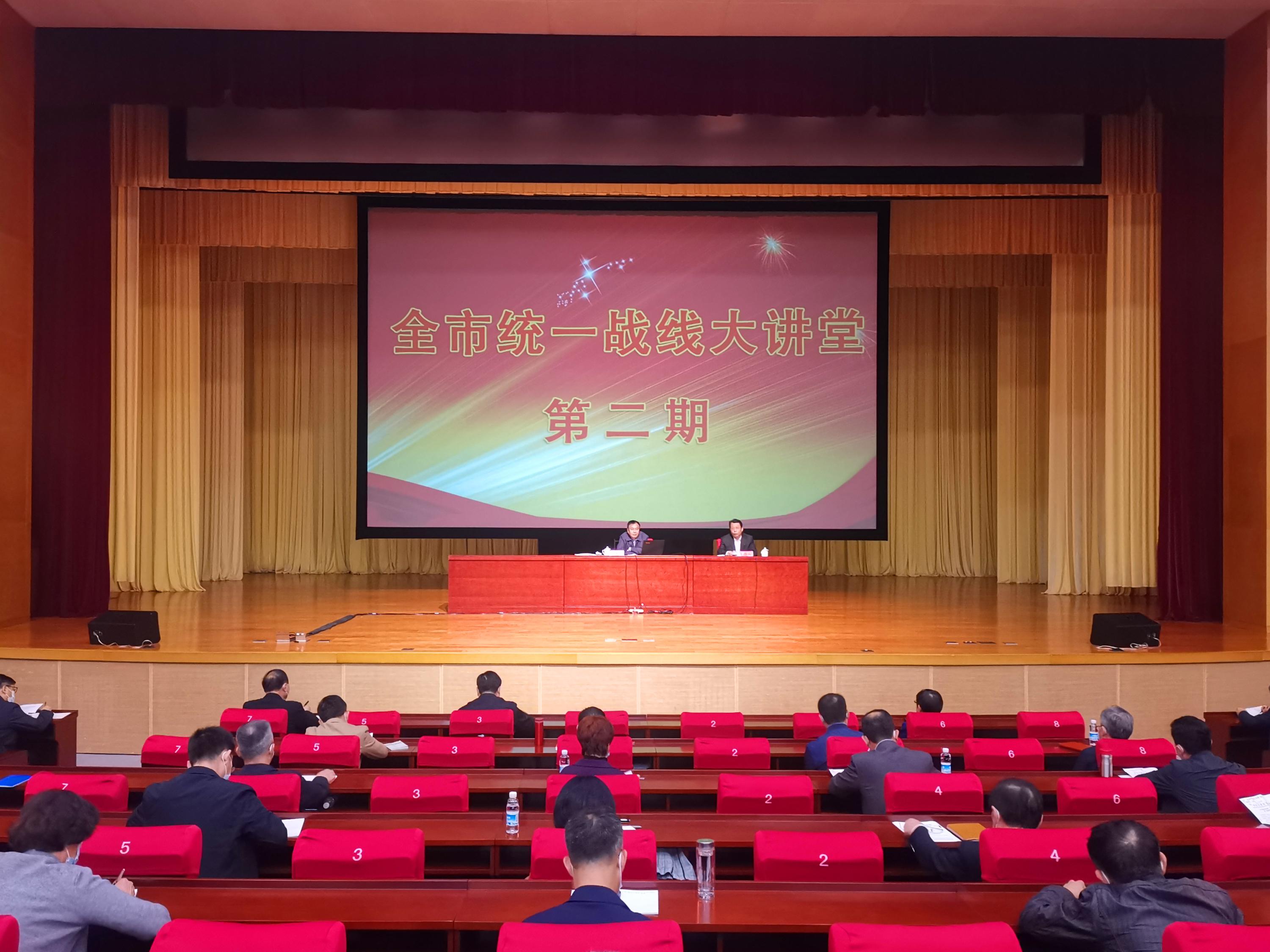 10月15日,市委统战部在市委党校礼堂举办“全市统一战线大讲堂”第二期讲座,邀请全国人大外事委员会委员,原中央文献研究室副主任,中央马克思主义理论研究和建设工程咨询委员会委员,党史学习教育中央宣讲团成员陈晋同志,围绕“从党史看精神、看国家、看道路”主题进行辅导授课。市委常委、市委统战部部长冀国强同志,市统一战线领导小组成员单位分管领导及部门负责同志,各区党委统战部部长、副部长,市统战系统各单位、各民主党派市委会机关处级以上领导干部,驻部纪检监察组以及各高校、国有企业、科研院所、人民团体相关负责同志,市、区社会主义学院教师和部机关、直属单位全体干部共400余人参加。