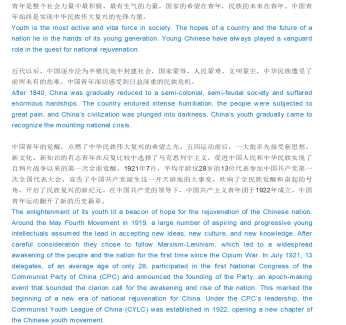 此外,二部党员还结合自身的英语专业翻译业务,学习了新时代的中国青年双语对照版,其中四字成语“生逢盛世”、“勇挑重担”、“开天辟地”等成语是业务学习的讨论重点。