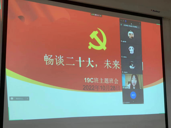 2022年10月28日,外国语学院190641C班全体学生通过线上线下相结合的方式召开主题班会。本次班会由班导师乔玉老师组织,到会老师有学校党办校办主任兼第二班导师牛国庆老师以及外国语学院系主任刘晓峰老师。