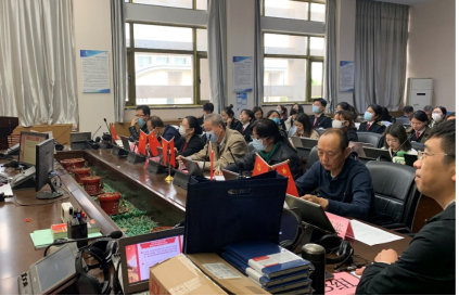 首先,大学英语二部党支部副书记带领大家深入学习习近平总书记《高举中国特色社会主义伟大旗帜为全面建设社会主义现代化国家而团结奋斗》报告的思想精髓和丰富内涵,结合多媒体短片,从高度、深度、跨度、速度、精度、力度六个维度看中国这十年;并回顾了“报告”的十五个重要部分。