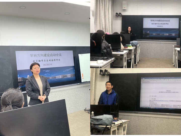 本学期伊始,外国语学院围绕外国语言文学学科建设与师资发展两项重要工作先后召开了系列推动会。自2022年我校获批外国语言文学硕士点以来,学校、学院领导高度重视,外国语学院建立了“航空翻译与区域国别”“外国文学”和“外国语言学及应用语言学”三个学科方向团队,制定了具体的学科建设、师资发展和人才培养方案,2023年正式启动硕士点招生与其他建设工作。为加速推进学科建设和各学科方向师资发展,学院在本学期积极启动了系列研讨会。