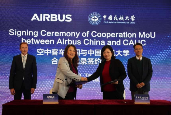在联合平台共建领域,双方挂牌成立“空中客车中国—中国民航大学校企合作暨航空人才联合培养基地”以及附属的研究生实践创新基地,共同提供配套资源,共同支持高校学生进一步了解航空产业可持续发展前景。以人才联合培养基地为载体,根据空客在天津的战略布局和发展规划,中航大积极参与空客在天津项目的建设。