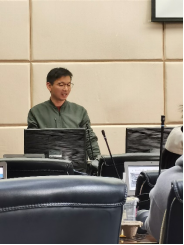 最后一位开讲嘉宾是澳门大学博士学成归来的耿峰老师,他以《我读博士的那些美好时光》为题,以自己的博士学习经历为线索,向学生们展示了科研之路上的挑战与收获,鼓励学生们树立远大的目标,并在追求卓越的道路上养成良好的学习习惯。这不仅为新生们提供了宝贵的第一手学术经验,更是激发了他们对于未来学术探索的热情。耿博士的真诚分享和深刻见解,让在座的学生们深受启发,纷纷表示要以此为榜样,不断努力,争取在翻译领域取得自己的成绩。耿博士还特别强调了翻译专业新生应该具备的基本素养和技能。最后他对学生提出期望,优秀的翻译人才不仅需要扎实的语言基础,还需要具备广阔的知识面、敏锐的文化洞察力以及良好的沟通能力。因此,新生们应该注重培养自己的综合素质,积极参与各类实践活动,锻炼自己的翻译实践能力。