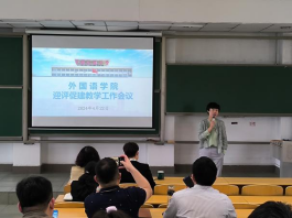 4月22日下午,外国语学院在南教2-306教室召开本学期第四次迎评促建教学工作会议。校党委第三巡察组领导和成员列席,院长张艳玲出席,副院长陈绍英主持,各专业负责人、各课程组长参加会议。