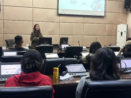 于佳副教授作了题为《在演讲比赛中认识自己、实践自己、超越自己、成为自己》的讲座。于老师每年承担外研社国才杯演讲大赛的指导工作,2021年指导英语系学生洪旻昊取得全国二等奖的佳绩。她强调,演讲需要对主题的思考和感悟,更需要真挚的情感,“用你的心去说话,用你的情感去感染听众。真挚的情感,比任何技巧都更能打动人心。”她鼓励学生要通过大量的练习来提升自己的演讲技巧,“台上一分钟,台下十年功。只有经过反复的打磨与练习,才能在演讲中游刃有余。”当看到学生有畏难的表情时,又语重心长地告诉学生,比赛的结果并不是最重要的,重要的是享受比赛的过程,从中学到知识和经验。“把每一次演讲都当作一次学习的机会,无论结果如何,你都会有所收获”。于老师幽默的语言,生动的话语给翻译专业的学生留下了深刻的印象。