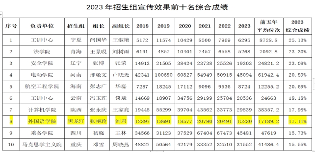 外国语学院始终高度重视招生宣传工作,2023年黑龙江省理工类录取最低分取得了提升5261位次的显著进步。面对2024年的招生工作,学院将继续坚持“提前谋划,科学布局,精准对接”的招生宣传理念,通过建立目标高中专人对接、重点地区专人负责的招生联络机制,进一步提升招生宣传工作的精准性、有效性和持续性,全力在黑龙江省、安徽省持续提高我校的生源质量水平。