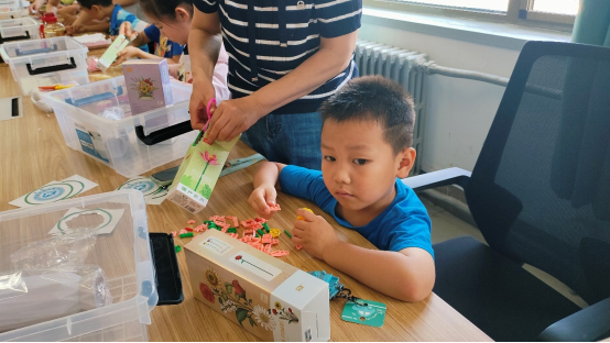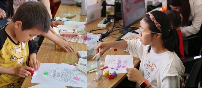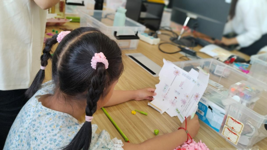 特别强调的是,此次活动中使用的所有拼接积木、贴纸及花边剪刀均为国产品牌。小朋友在完成花束作品后对国产的玩具赞不绝口,“中国制造”概念在小朋友的心中生根发芽。