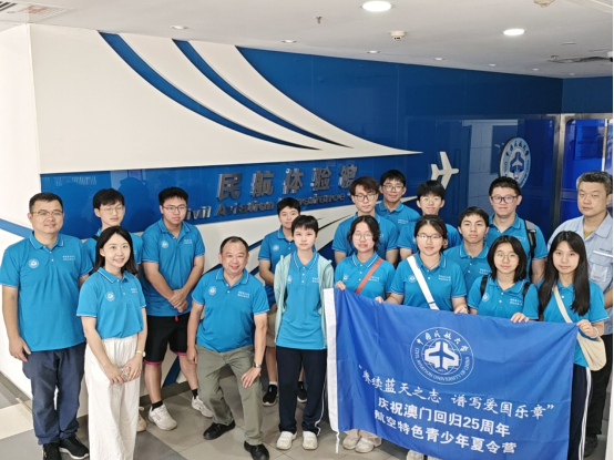 8月25日,“赓续蓝天之志 谱写爱国乐章”——庆祝澳门回归25周年航空特色青少年夏令营在中国民航大学圆满结营。在为期4天的营期里,来自澳门教业中学、濠江中学两所学校的14名师生解锁航空历史,了解民航现状,并化身飞机“工程师”、“驾驶员”和“空管员”全方位认识和体验了民航工作场景。