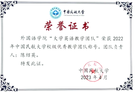 本参赛案例所依托课程“大学英语(1)”先后获2021年中国民航大学校级课程思政示范课程认定、2024年天津市线上线下混合式一流本科建设课程,“大学英语教学团队”入选2022年中国民航大学校级优秀教学团队,团队教师多次荣获国家级、省部级、校级等教学竞赛奖励,并指导多名学生参加英语权威学科竞赛取得优异成绩,“教学相长”助力提升学生英语综合能力。