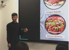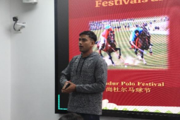 第八场演讲由外国留学生Singh Nepal(辛明)和Asad Eil分别介绍巴基斯坦(Pakistan)的文化与风俗习惯。Singh介绍,巴基斯坦在南亚、中亚和中东文化的共同影响下,形成了热情好客以及重视家庭与长者的传统,还有尚杜尔马球节、卡什拉节等盛大热闹的节日都洋溢着欢喜与庆贺,著名的传统运动是卡巴迪和马背叼羊,各种辉煌的文化遗产和建筑、音乐与舞蹈相映成趣,巴基斯坦的热情和和睦的家庭文化也在生活中展现的淋漓尽致,中巴友好关系也再次被强调。Asad身穿巴基斯坦国装,讲到巴基斯坦的不同民族及其民族语言,宗教、节日、美食、舞蹈与运动再度上榜,他向人们细细道来其中的奥秘。国家国歌与军队的加入与现场演唱,使得活动气氛乍然间庄严肃穆,也让大家感受到了他们对国家深深的热爱。