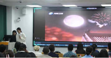 第三场演讲是中国学生张春阳关于中秋节特色歌舞欣赏的分享。首先映入眼帘的是舞蹈《鹤归来兮》,在欣赏舞蹈视频的同时,其背后的现代科技和古画古诗相结合的特质也被娓娓道出,展现出了古代中国文化在当代的新发展与传播。另一个节目则是歌曲《月光》,虽然是简单直白的抒情语调,但却最能勾起团圆之念,让人产生无尽的眷恋与思乡之情。