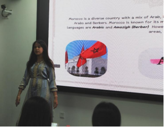 第九场演讲是外国留学生Douae Doubaj讲述摩洛哥的文化轶事。摩洛哥位于北非,有着丰富深远的历史与传统和充满活力的生活方式,在多重因素影响下,除阿拉伯语和阿马齐格语(柏柏尔语),法语、英语和西班牙语也有广泛使用。长袍类的传统服饰深受摩洛哥人喜爱,摩洛哥美食也以其独特的香料闻名于世,丰富的节日传统中开斋节和古尔邦节都在其列,花纹规整又繁复的手工艺品同样世界知名,摩洛哥人民的温暖与热情欢迎每位游客的到来。