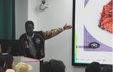 第六场演讲是外国留学生Aysel Khalihova(美玲)介绍她的国家阿塞拜疆(Azerbaijan)的文化与风土人情。起始,一个视频直击眼球,大片的美景冲击让人惊叹于这个坐落于欧亚交界的国家的美丽与发达。它拥有一千万的人口,首都位于Baku(巴库),以中西混合文化而出名,奉行热情好客、注重家庭、尊重老人、重视传统的价值观,以及国家重要假日之一“诺鲁孜节”和令人垂涎的特色美食们,最后以充满中西文化混和风味的视频作结,令人回味无穷。