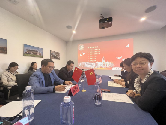 10月10日下午,外国语学院党委与天津财经大学人文学院党委在位于五大道的中国民航大学思政课实践教育基地开展支部共建党日活动。外国语学院党委副书记、院长张艳玲,天财人文学院党委副书记、院长温秀颖,以及中航大外国语学院英语系教师党支部,天财人文学院商务英语系与日语系教师党支部、英语系教师党支部等单位有关负责人和党员教师共计20余人参加。与会党员同志共同参观两航起义图文展,座谈交流研讨党建引领、课程思政、国家级一流本科专业建设等专题,收获丰硕。双方党委约定,在“喜迎党代会、共铸新辉煌”的大主题下,第二场支部共建活动将于近期聚焦“数智化与英语一流专业建设”专题,借助中国民航大学教育部航空英语虚拟教研室平台展开。