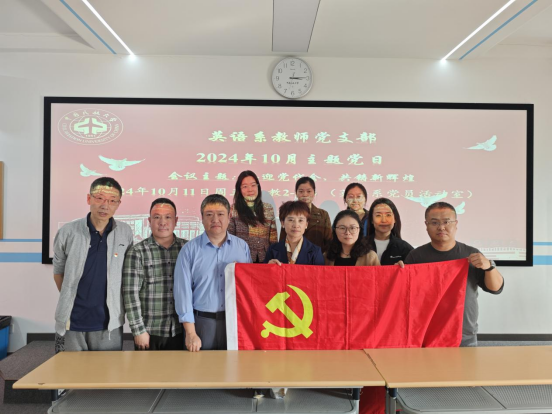 10月11日前后,在全校固定党日活动之际,外国语学院党委紧密围绕“喜迎党代会、共铸新辉煌”主题,通过党员大会、校际党支部共建、党支部党日活动等,深入学习贯彻党的二十届三中全会精神和全国教育大会精神,与本科教育教学审核评估相结合,与巡察整改相结合,以优异成绩迎接学校第三次党代会胜利召开。