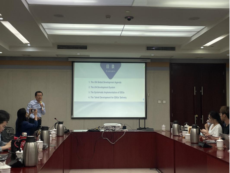 首场讲座,王纪元以“联合国发展体系及可持续发展议程”为主题,与外院师生共同探讨了联合国在全球发展领域的重要作用以及中国青年人才面临的挑战。讲座伊始,他以习近平总书记在庆祝联合国成立75周年特别峰会上的致辞为切入点,指出联合国75年的光辉历程见证了人类社会迅速发展、国际形势深刻变化以及多边主义快速发展,同时提出联合国在主持公道、厉行法治、促进合作、聚焦行动方面发挥的关键作用。他介绍了全球发展倡议,强调坚持发展优先,秉持以人民为中心、普惠包容、创新驱动、人与自然和谐共生、行动导向的理念。