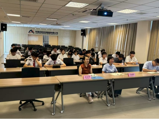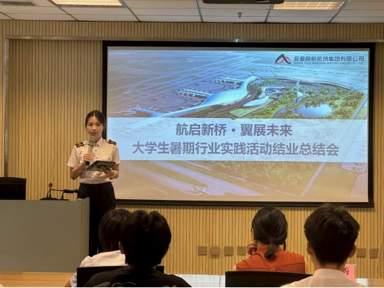 2024年,中国民航大学20余名师生在合肥新桥机场开展了第一期的民航实习实践,受到师生一致好评。在此基础上,2025年7月启动了第二期实习,安徽民航机场集团为每位实习生分配资深工作人员作为行业导师指导实习实践,设置了国际值机、航站楼运行、机场运行、场道及净空管理等4类工作30余个实习岗位,30名学生进行了为期一个月的行业实践活动。结业仪式上,各学院优秀学生代表依次上台分享了他们在机场各岗位的实习经历与深刻感悟。