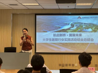 8月20日,第二期“航启新桥 翼展未来”暑期实习实践活动结业仪式在安徽民航机场集团举行。安徽民航机场集团党委组织部(人力资源部)副部长雷丽琨出席,中国民航大学外国语学院教师代表及30名学生参加结业仪式。