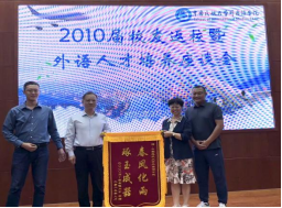 活动最后,朱瑞新与张艳玲代表学院向各位校友赠送了精心准备的纪念品,表达对校友们重返母校的诚挚感谢与美好祝愿。校友们也向外国语学院赠送了一份情意深重的锦旗,旗面上“春风化雨,琢玉成器”八个大字熠熠生辉,既是对学院教书育人工作的崇高赞誉,也凝聚了校友们对母校深切的感恩之情。现场温情涌动,双方以礼相赠,不仅传递了深厚的师生情谊,更彰显了校友与学院之间紧密相连共同前进的美好愿景。
