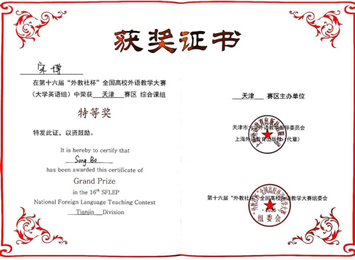 近日,第十六届“外教社杯”全国高校外语教学大赛(天津赛区)圆满落幕。中国民航大学外国语学院青年教师宋博凭借扎实功底与出色表现,荣获大学英语综合课组特等奖,并作为天津赛区该组唯一代表晋级全国总决赛,充分彰显了学校外语教师队伍的教学水准与育人成效。