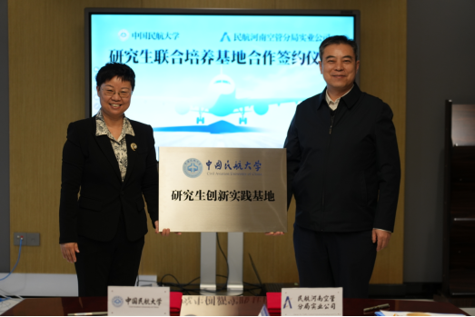 10月17日,经研究生院授权,外国语学院在郑州与河南空管实业发展有限公司举行校级研究生创新实践基地签约和挂牌仪式。民航河南空管分局、河南空管实业公司相关领导出席。