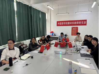 11月14日下午,外国语学院翻译系教师党支部紧扣“深入学习贯彻党的二十届四中全会精神,结合校第三次党代会精神,为学校、学院科学谋划‘十五五’事业发展规划献计献策”主题,组织开展11月份主题党日活动,通过系统学习与深入研讨,统一思想、凝聚共识,激发全体党员教师干事创业的内生动力。校两委委员、安全学院院长周晓猛,外国语学院副院长陈绍英、翻译系主任崔澍参加活动。