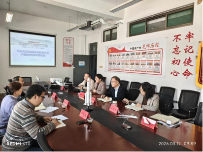 3月12日下午,南昌航空大学外国语学院院长徐筱秋、副院长冯克红、语言研究所所长徐翰一行到我院调研交流。院党委书记朱瑞新、院长张艳玲、副院长侯静华及相关人员参加调研座谈。
