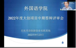 2022年9月23日下午,民航英语创新创业实践基地成功举行2022年度大学生创新创业训练计划项目(以下简称“大创项目”)中期检查评审会,共20个项目参加了本次中期评审,其中4个项目被评为“优秀”,16个项目评为“合格”。
