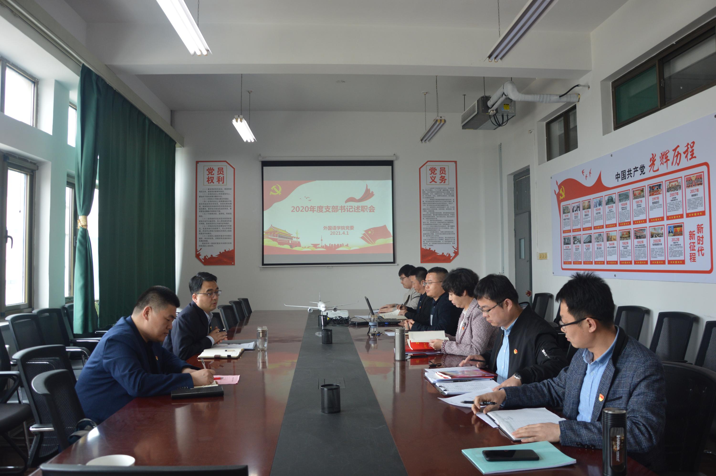根据《中国民航大学党支部考核细则》文件精神,外国语学院党委于4月1日下午召开2020年支部书记工作述职会。院党委书记、副书记以及各支部书记参加本次会议。