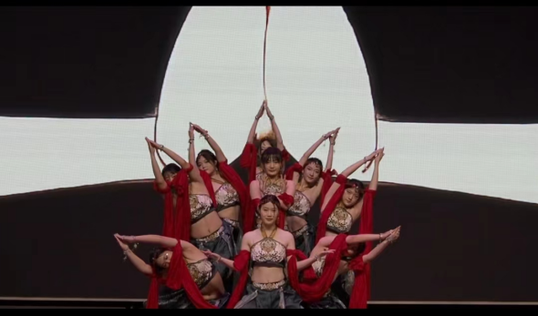 健身操舞是一项极具青春活力,且能够有效增强舞者身体素质和美育素养的运动项目。本次赛事分为学院组和自由组两个类别,共吸引近30支队伍参加。外院代表队表演作品《又见敦煌》以敦煌壁画中的伎乐形象为创作背景,舞蹈秉承中国传统美学原则,吸收、借鉴民族舞姿和健美操动作,将两者合二为一,运用古典舞蹈的节奏韵律,将静止的姿态和与其风格统一的动作过程结合形成较完整的舞蹈运动和造型体系。