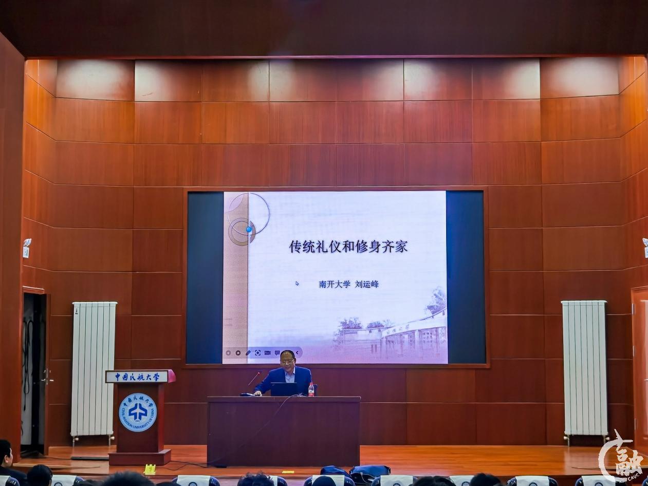 3月24日,中国民航大学第二期“蓝天修身文苑——中华优秀传统文化周末大讲堂”在东丽校区南区圆形报告厅开讲。南开大学新闻与传播学院教授、博士生导师、现代出版研究中心主任刘运峰作题为《传统礼仪和修身齐家》的专题讲座。