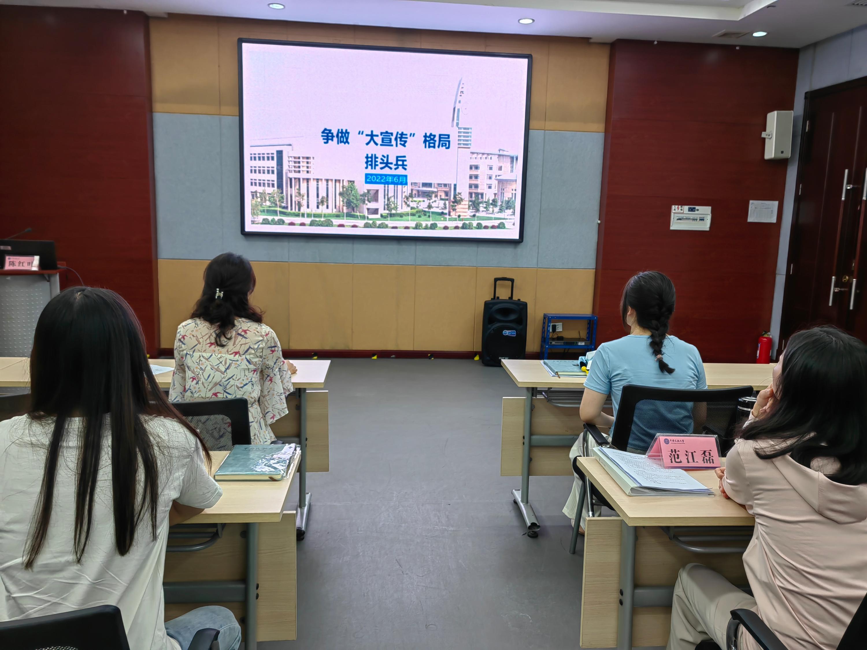 6月23日下午,党委宣传部为新入职辅导员围绕“争做‘大宣传’格局排头兵”,做好宣传思想工作专题培训。培训由宣传部新闻中心负责人陈红叶主讲。