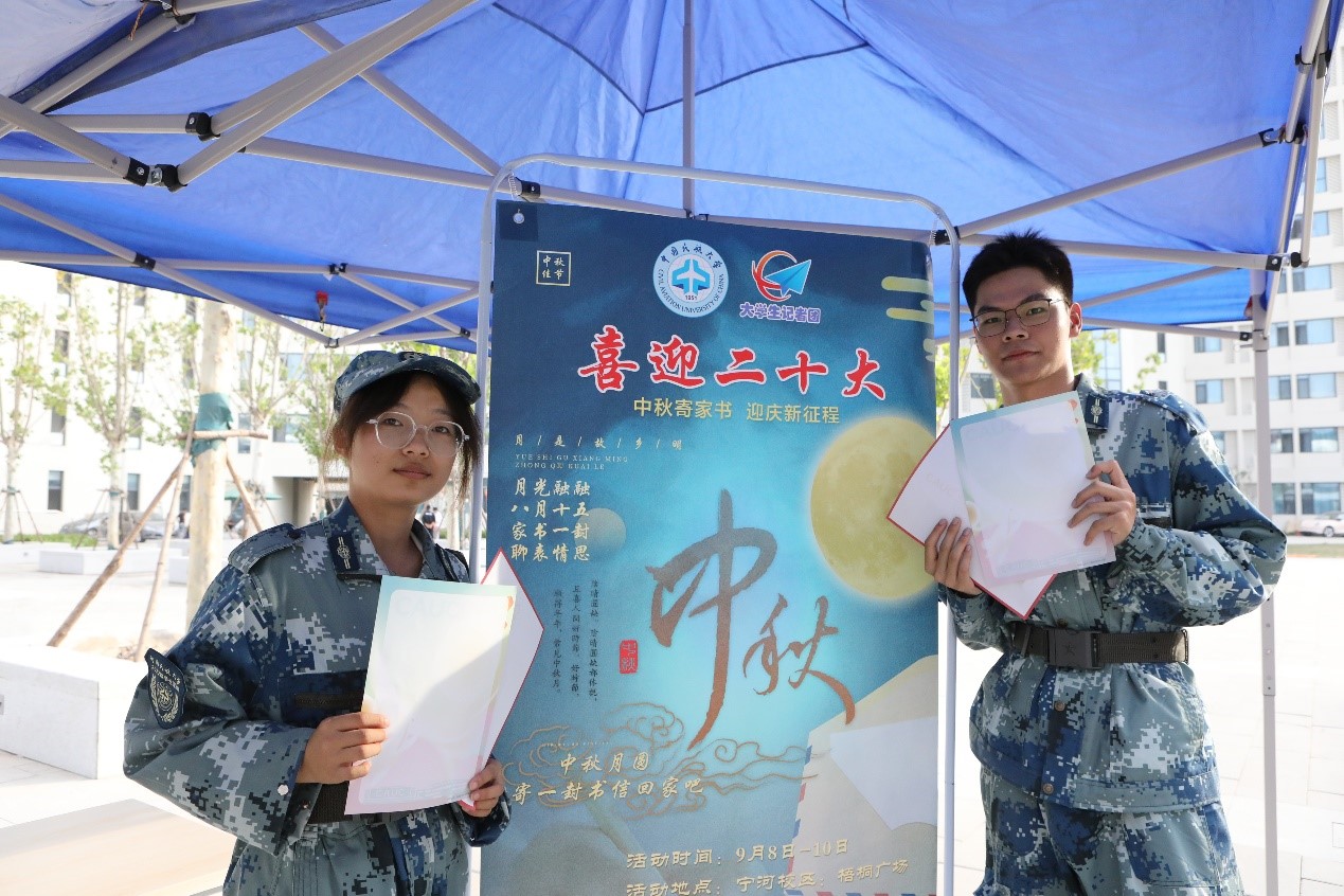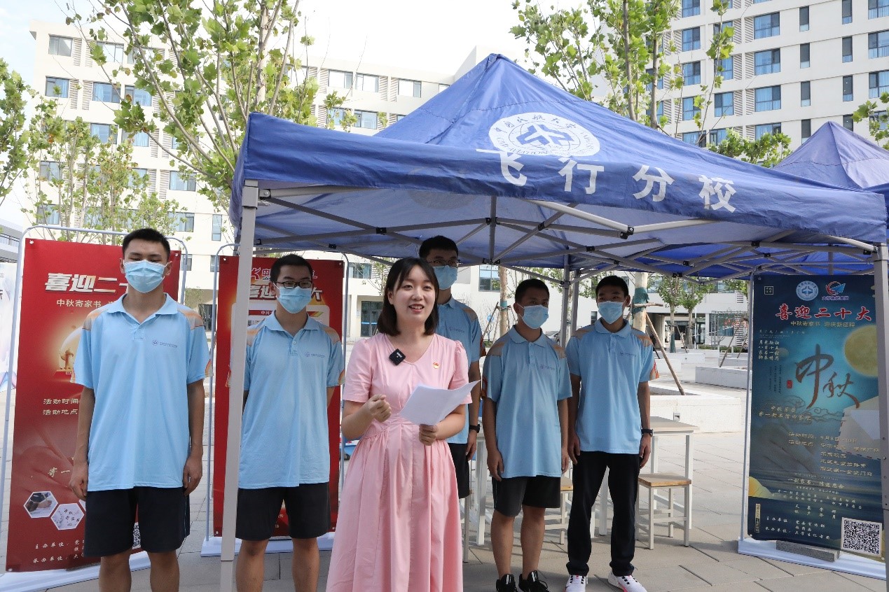 理论学习环节结束后,马克思主义学院教师孙彤彤以“话中秋 念党恩”为题,为宁河校区学生开展微党课分享活动,通过讲述中秋故事,引导学生感悟中国传统文化魅力,厚植家国情怀和民航担当。马克思主义学院参会学生代表在宁河校区梧桐广场寄出家书,用书信表达对父母的思念、对老师的感恩、对中航大的期待。