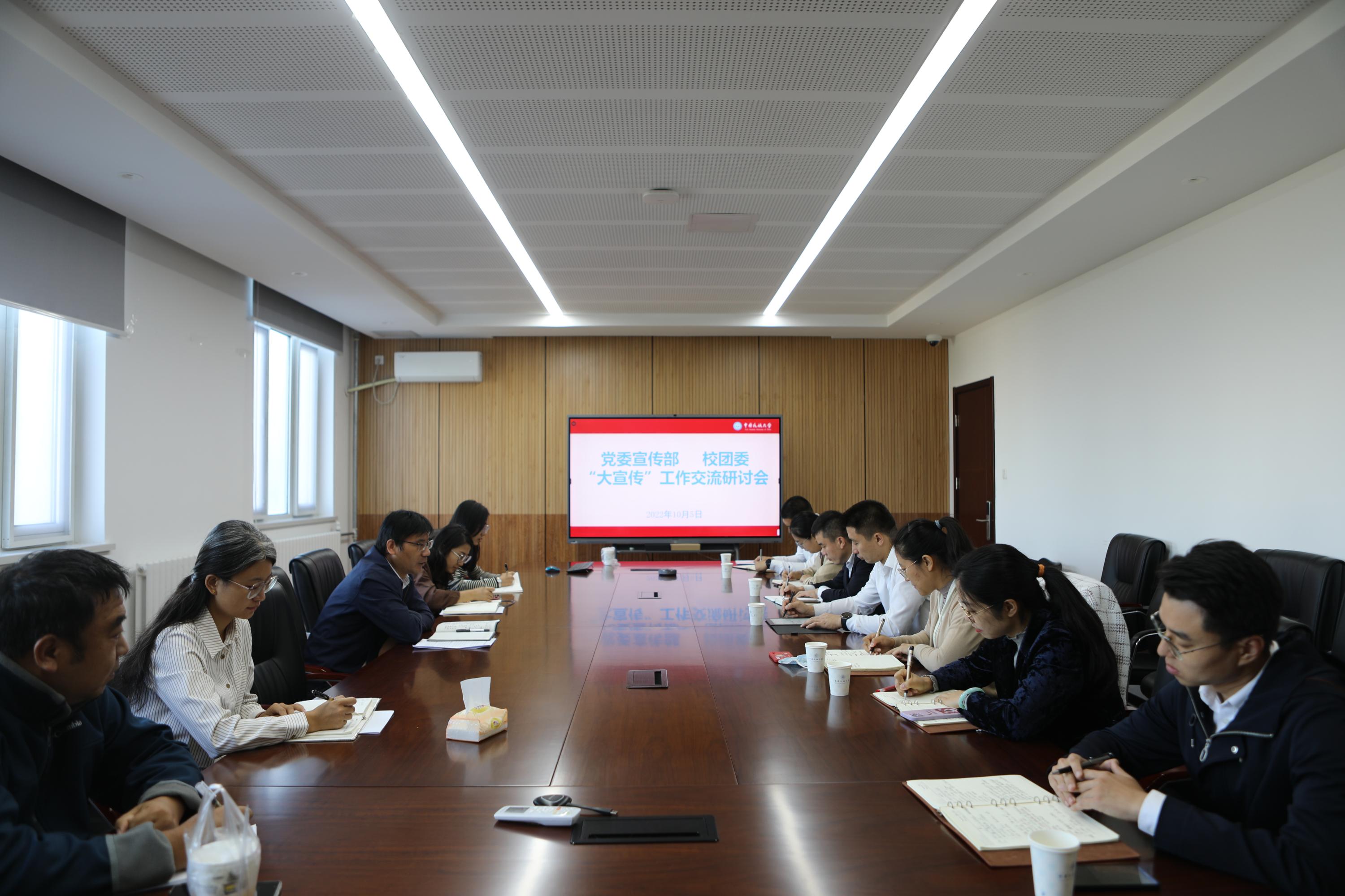 10月5日上午,宣传部(教师工作部)与校团委在勤业楼420联合开展“大宣传”工作交流研讨会,就如何进一步增强部门间协作,扩大学校宣传力度展开充分讨论。宣传部部长徐雪峰、校团委书记何珠城出席会议,宣传部新闻中心、校团委全体成员参会。