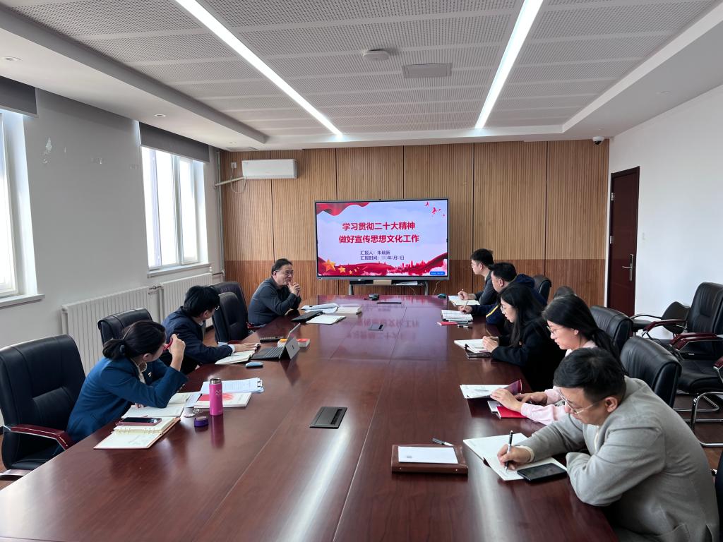 朱瑞新以《学习贯彻党的二十大精神 做好宣传思想文化工作》为题,从党的十八大、十九大、二十大报告中关于思想建设、文化建设相关论述的变化出发,详细解读了新时代十年的“变”与“不变”,带领大家领悟党的二十大精神的历史逻辑、理论逻辑、实践逻辑,进一步深化对做好新时期宣传思想文化工作新要求的理解和把握。陈红叶以《融聚力量 铸就辉煌》为题,带领大家回顾党的宣传思想工作的奋斗历程,系统学习习近平总书记关于着力打造新型主流媒体的重要论述,并从宏观角度和具体层面阐述如何做好新时期学校的宣传思想文化工作。支部党员在日常学习基础上,结合本职工作,集中分享了学习所得、体会和感悟。
