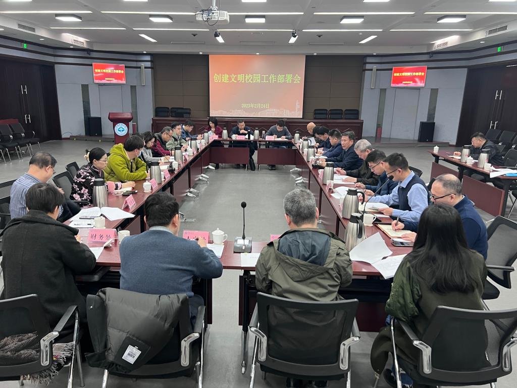 2023年2月24日,学校创建文明校园工作部署会在学术交流中心十会议室召开。校党委副书记赵洪海主持,党办校办、组织部、宣传部(教师工作部)、统战部、纪委办、学工部、校团委、保卫处、教务处、研究生院、科技处、人事处、财务处、国资处、校园建设保障部、工会办公室、网信办、科创院、图书馆、马克思主义学院、乘务学院、体育部、中航大公司主要负责人参加。
