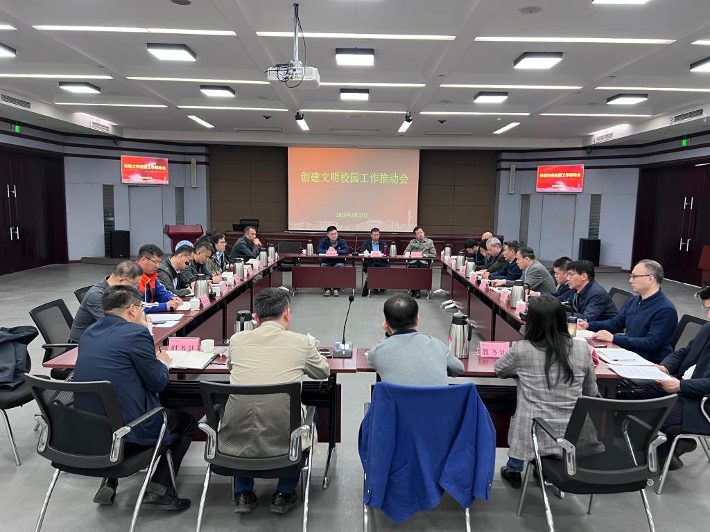 2023年3月27日,学校创建文明校园工作推动会在学术交流中心十会议室召开。校党委副书记赵洪海,校党委常委、工会主席王志强出席,创建文明校园相关单位主要负责人参加。