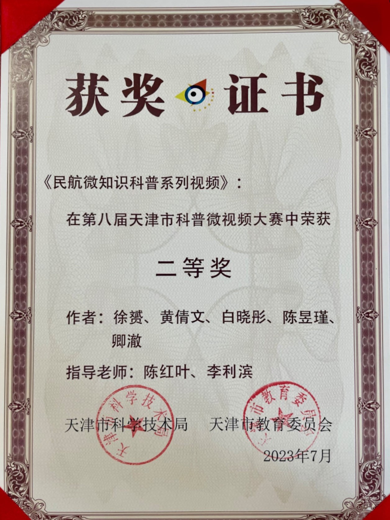 11月30日,第八届天津市科普微视频大赛颁奖典礼暨第九届天津科普微视频大赛启动仪式在天津市河西区政务服务中心举行。宣传部陈红叶、李利滨指导的《民航微知识科普系列视频》作品获得二等奖。
