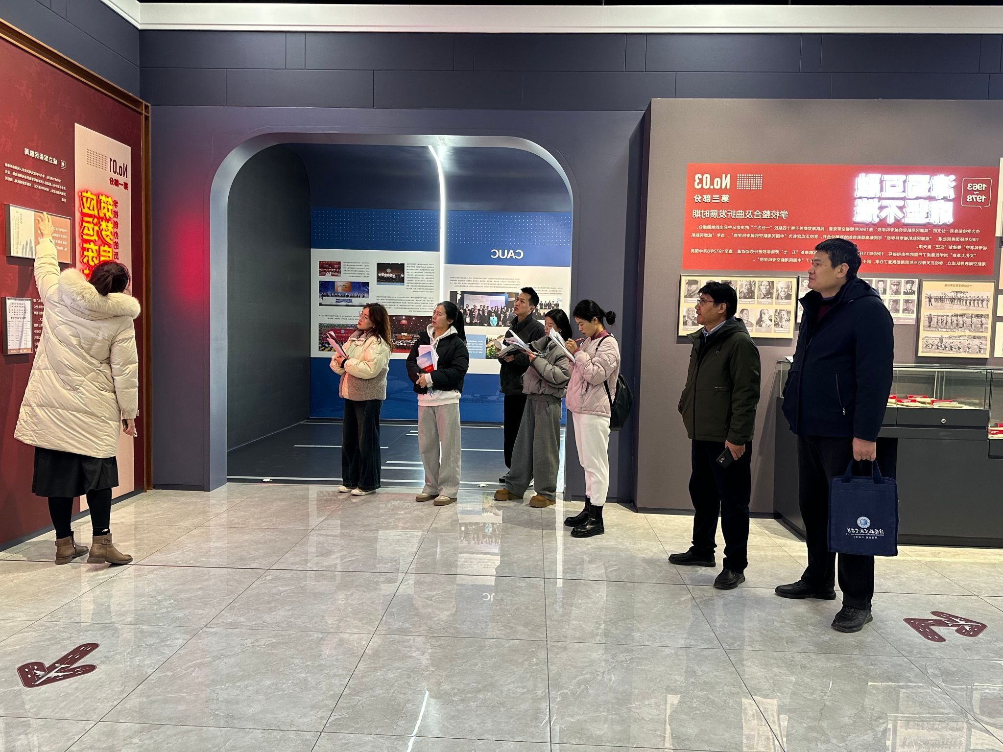 本次培训由党委宣传部和马克思主义学院共同组织,培训在校史馆现场结合《中国民航大学校史》集中开展。5名讲解员教师均为学校思想政治理论课教学骨干,政治素质过硬,理论功底扎实,语言表达能力强,对学校历史和文化有着深刻的理解和热爱。培训内容涵盖校史馆展陈内容、讲解技巧、礼仪规范等方面,并组织教师进行实地演练和模拟讲解,旨在他们能够以饱满的热情、专业的素养、生动的语言,向广大师生和各类观众讲好民航故事,传播民航精神。