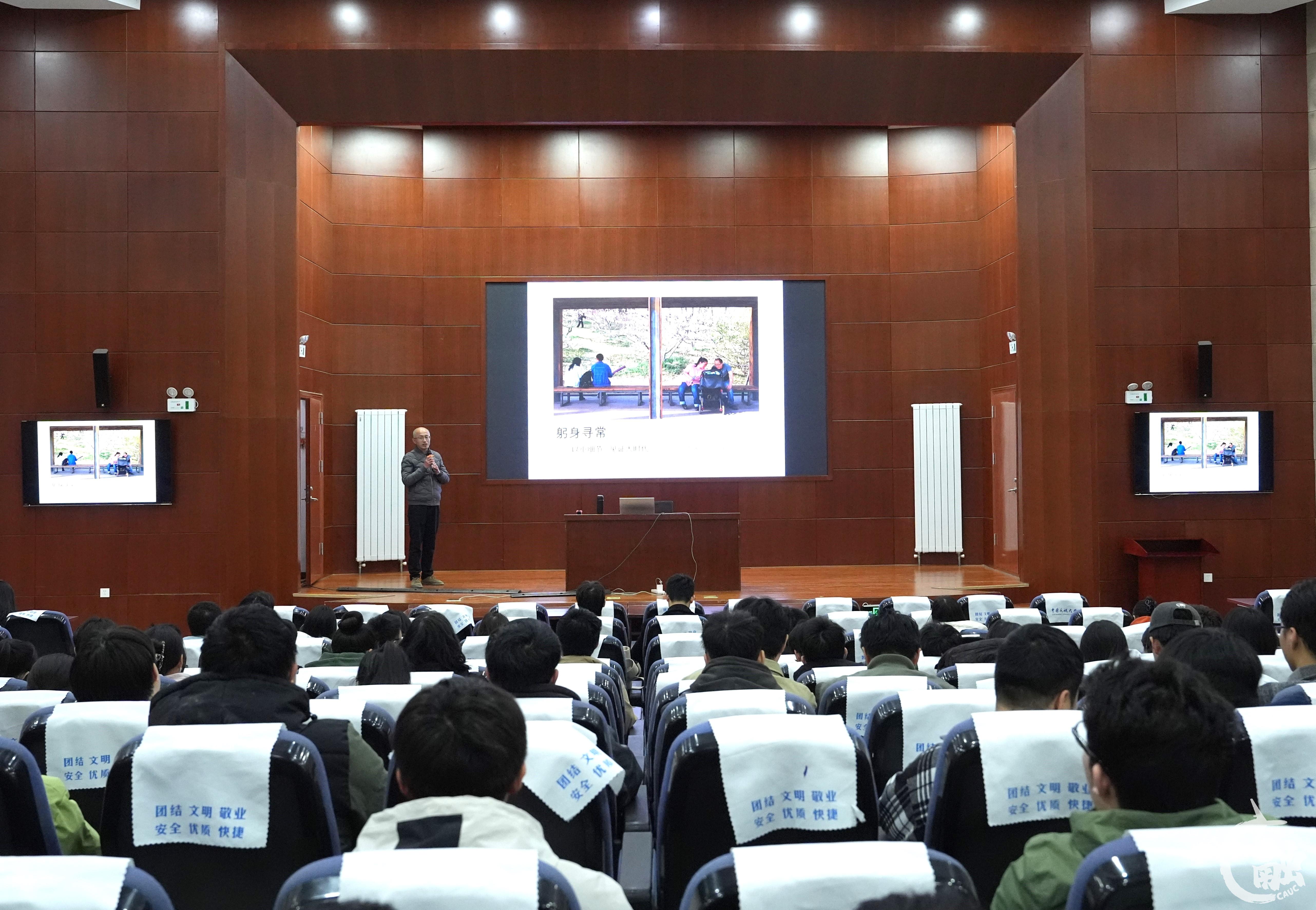 本网讯 3月28日,中国民航大学在南区图书馆圆形报告厅召开新闻舆论工作培训会暨月度校级选题会。天津日报高级记者、中国摄影家协会会员、天津市新闻摄影学会理事姜宝成以《躬身寻常——以小细节见证大时代》为题开展讲座。各党委(总支)新闻联络员、通讯员,新媒体联盟注册新媒体阵地负责人及学生骨干,学生社团负责人及社团新媒体负责人,以及热衷新闻摄影的广大师生到场聆听。