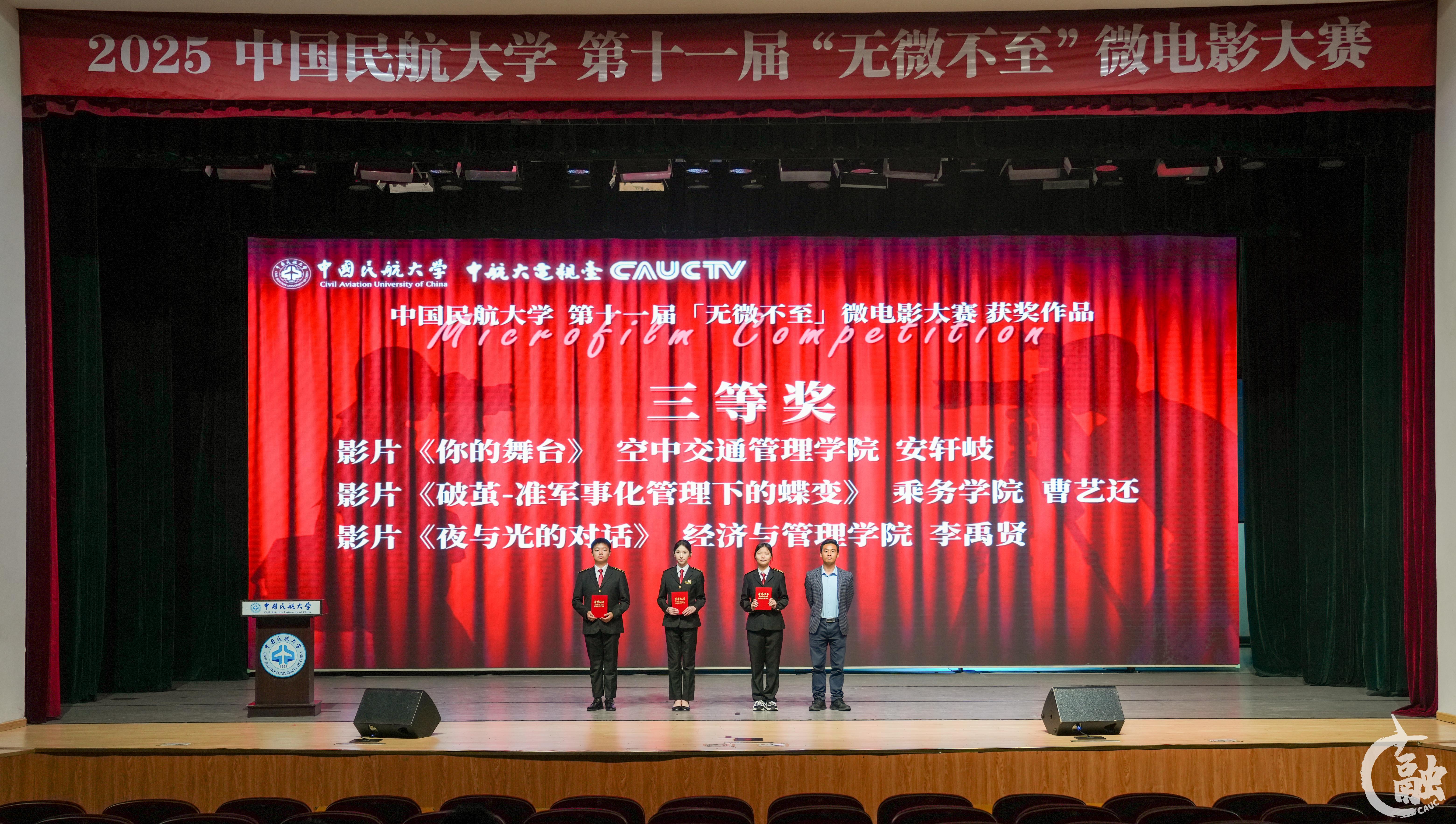 镜头定格青春,光影诉说热爱。5月9日,由中国民航大学党委宣传部主办,中国民航大学电视台承办的第十一届“无微不至”微电影大赛作品展映和颁奖典礼在东丽校区北院礼堂举行。活动吸引100余人报名参赛,经过专业评审,评选出一等奖1项、二等奖2项、三等奖3项、优秀奖8项。