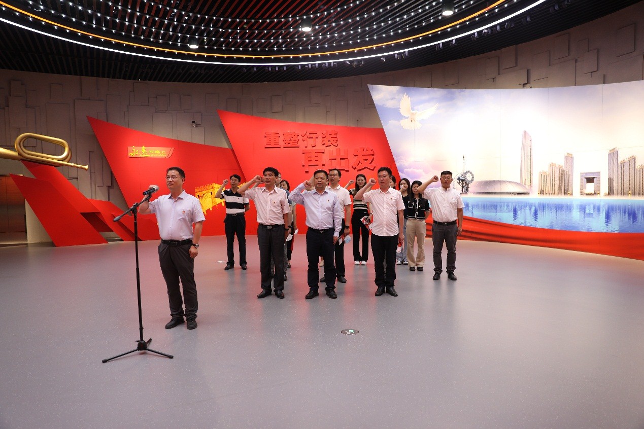 徐政华带领全体党员干部面向党旗肃立,举起右拳庄严宣誓,共同重温入党誓词。