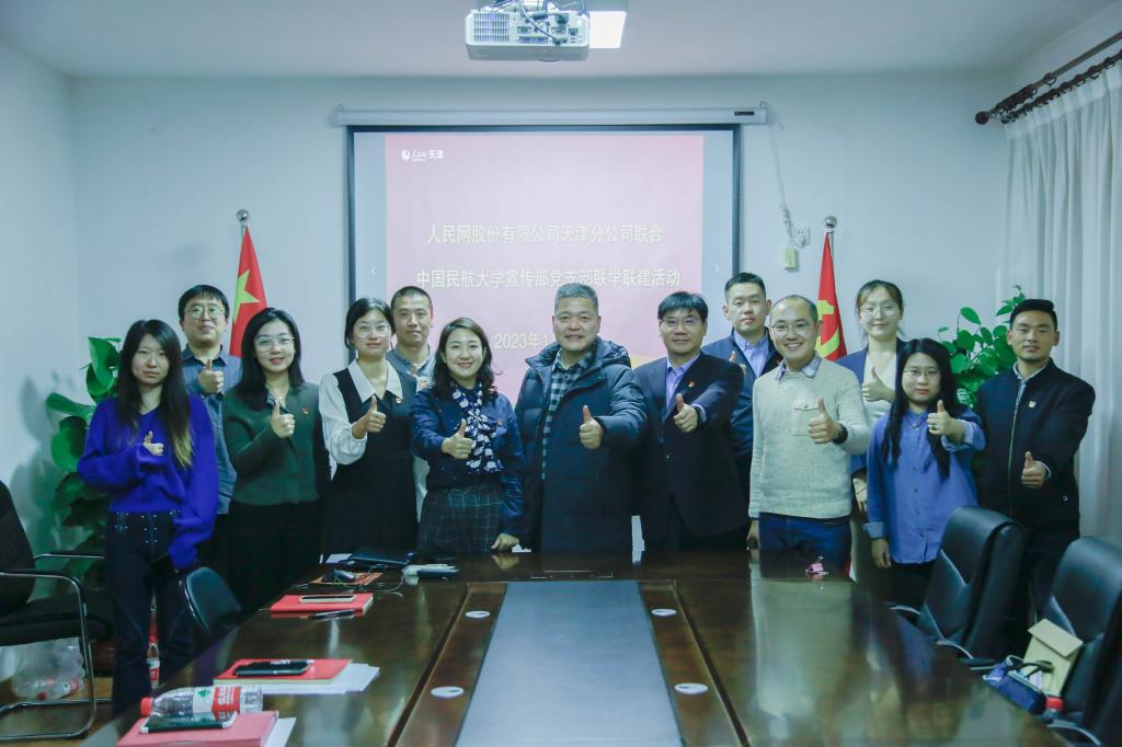 11月21日下午,宣传部党支部与人民网股份有限公司天津分公司开展联学联建党日活动,深入学习习近平文化思想,围绕讲好中国精彩故事、讲好中航大故事展开业务研讨。