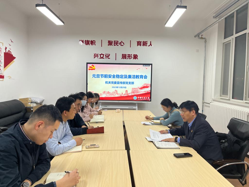 12月29日,宣传部召开元旦前安全稳定及廉洁教育会,部门全体人员参加会议。