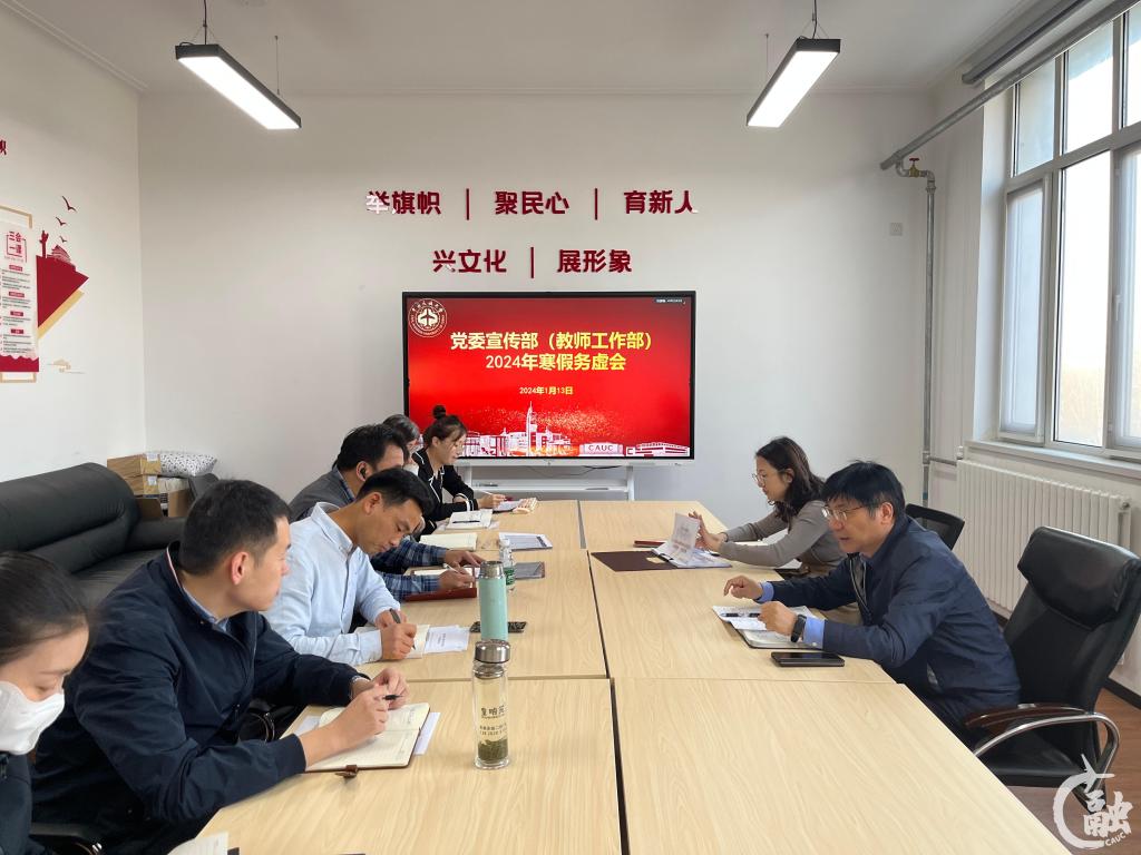 会上,全体人员集中学习习近平主席二〇二四年新年贺词,观看新闻联播视频“高擎习近平文化思想旗帜 凝聚团结奋进力量”,传达全国宣传部长会议、学校巡视与审计整改动员会、学校本科教育教学审核评估工作启动会精神,学习《中国民航大学领导干部出差审批管理办法》有关规定,审议《党委宣传部(教师工作部)各科室全年例行工作历表》。各科室工作人员结合岗位实际总结2023年工作成绩,剖析问题短板,畅谈发展思路,对谋划和做好全年工作提出了有针对性、可操作性的意见建议。