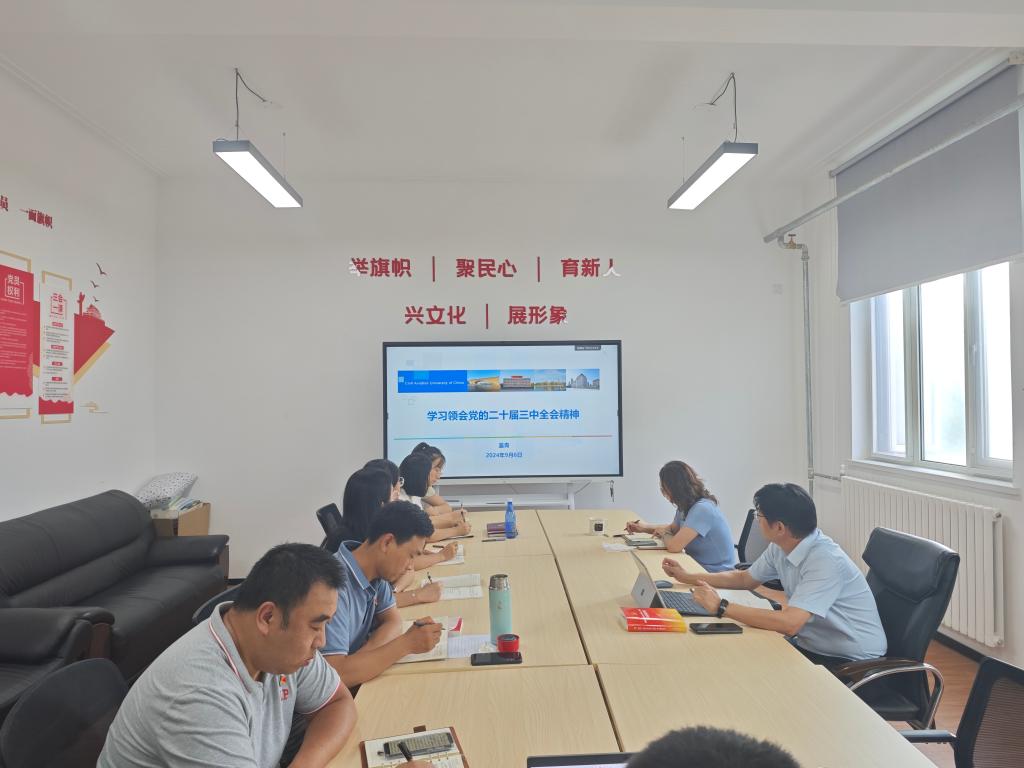 党支部成员交流学习心得体会。吴延松表示,学习宣传贯彻党的二十届三中全会精神是一项重大政治任务,要自觉增强学习宣传贯彻党的二十届三中全会精神的紧迫感、责任感和使命感,拓展宣传渠道,做好学校宣传思想文化工作。孟玲结合校园文化建设交流学习心得体会,她表示,要立足本校实际,以育人为核心,深入推进校园文化建设提质增效,积极构建高质量文化育人体系,引领学生努力成长为堪当强国建设、民族复兴大任的栋梁之材。于金龙表示,要创新学习方式方法,深入学习领会全会精神实质,学习相关的理论文章和权威解读材料,不断深化理解;要结合工作实践,推动学以致用,思考如何将全会精神转化为具体工作举措,积极投身到学校事业发展中。