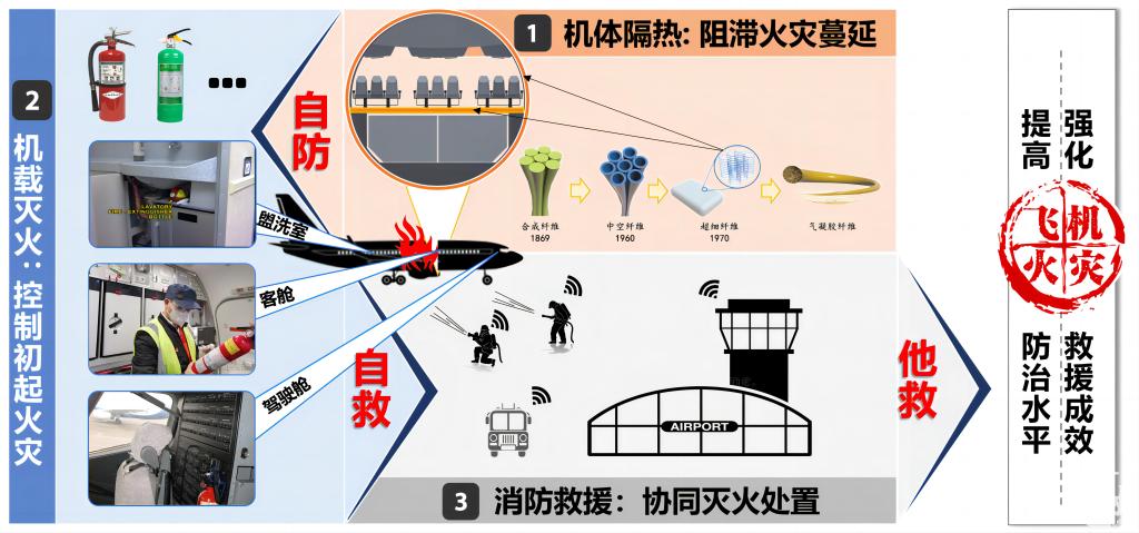 中国民航大学科技创新研究院副教授陈维旺说:“民用运输类飞机有严格的适航防火要求,使用的材料大多都是阻燃耐火的,并在关键区域,如发动机舱、货舱、客舱、盥洗室等,配备了一定数量的火灾探测和灭火设施,大家坐飞机还是很安全的。当然,随着我国民航业的快速发展和壮大,飞机防火的安全压力也在增加。针对飞机防火方面存在的技术瓶颈和短板,我们科研工作者也在不断深化相关研究,努力用科技力量守护乘客的安全。”