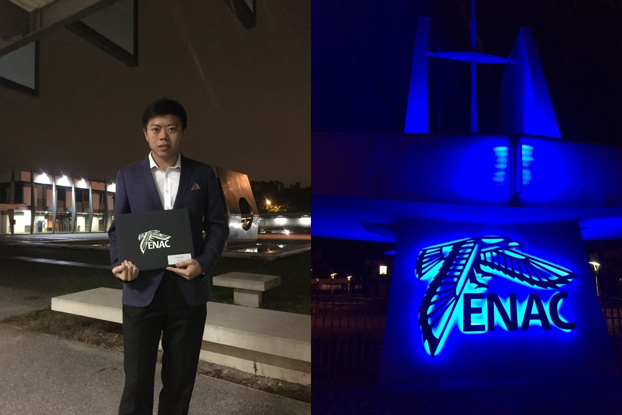 进入学院之后,他面临了全方位的考验。全新的教学模式、英文乃至法语的授课环境,加上远超国内标准的课业强度,让学习压力如潮水般汹涌袭来。“那段日子,每一门课程都像是一座难以逾越的高山,让人望而生畏,挑灯夜战更是成了生活常态。”他在回忆时坦言。但凭借在数学、物理和英语方面的深厚积累,以及顽强的毅力,他在荆棘满布的学术之路上稳步前行。无数个日夜的刻苦钻研,终于换来始终稳居年级前十的优异成绩。大四那年,当公派赴法后备师资选拔的机会来临时,他再度以非凡实力从众多优秀学子中脱颖而出,成为同届仅有的两名公派后备师资之一,获得了前往法国国立民航大学(ENAC)攻读工程师学位的宝贵机会,就此开启了海外深造的精彩篇章。