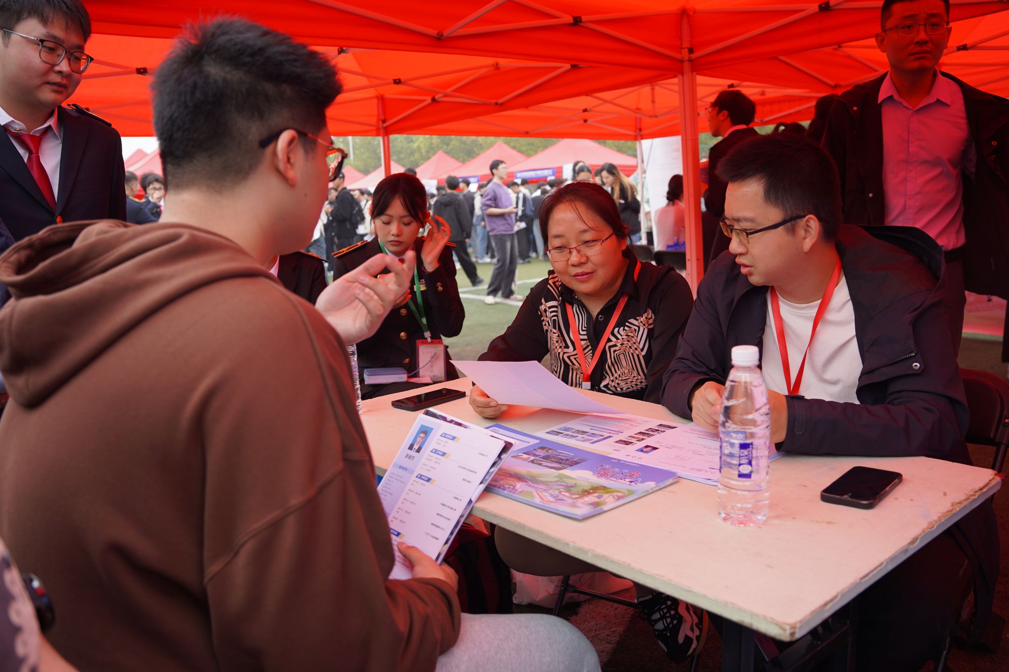 聚焦现场,人头攒动,摩肩接踵,同学们手持精心准备的简历穿梭于会场中,积极与企业代表沟通交流,展现自己的专业能力和综合素质,争取合适自己的就业机会。